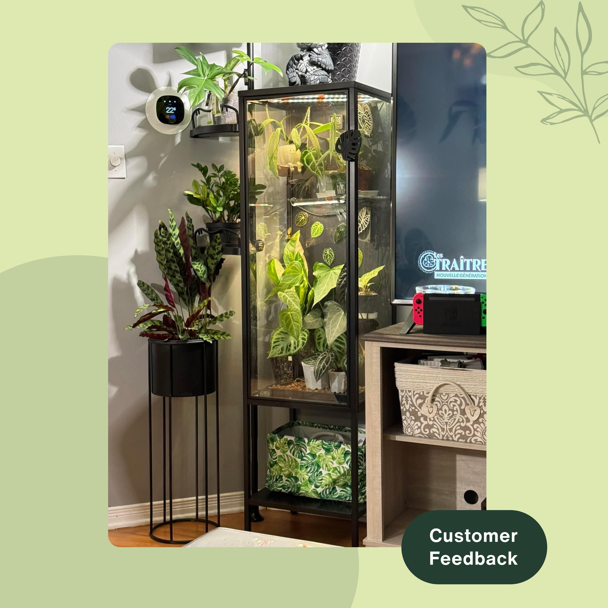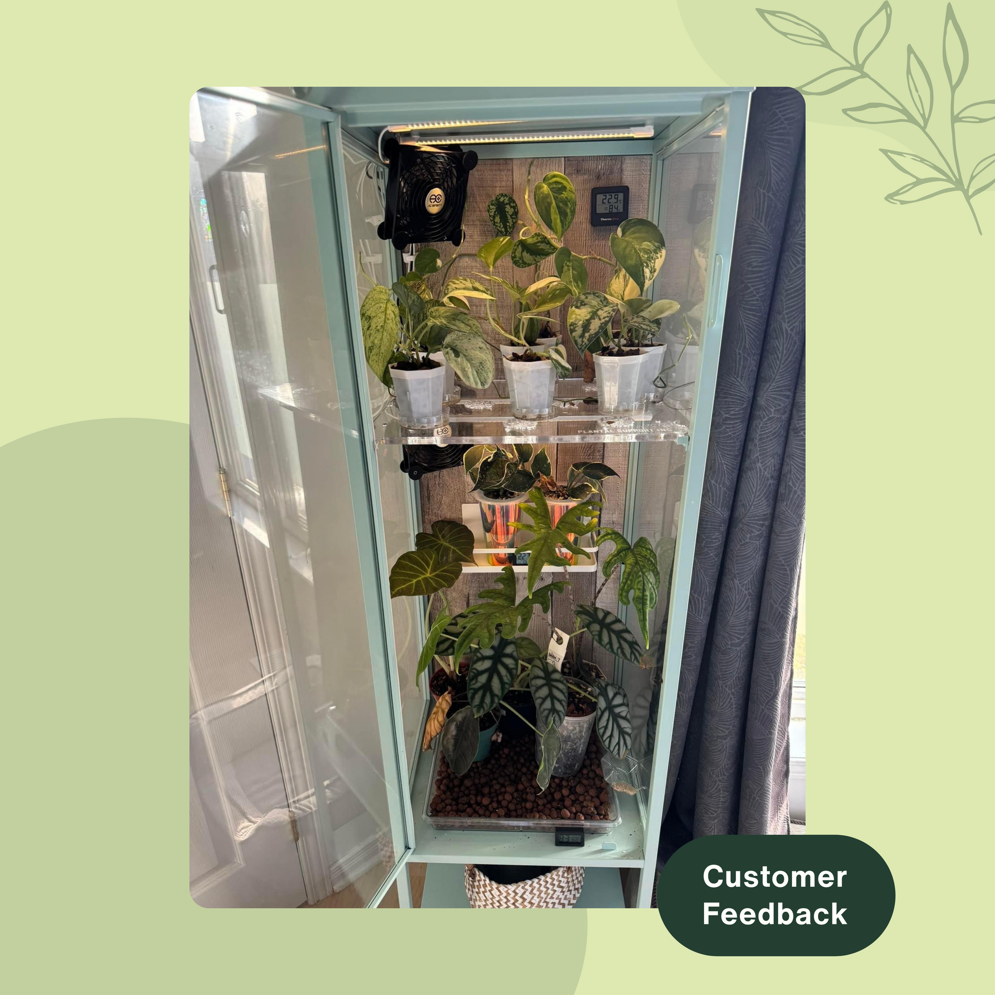 Conçu avec des fentes de ventilation et des trous pour les cordons électriques (ventilateurs, lumières, humidificateur, etc.)