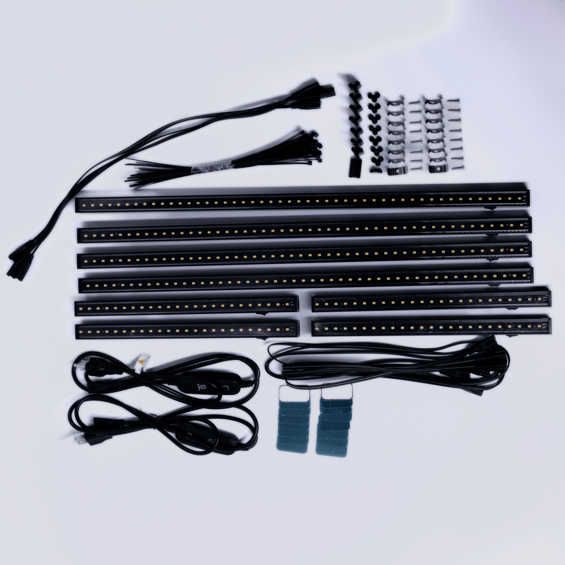 - Un ensemble de 8 lumières Barrina T5 magnétiques avec prise à minuterie intégrée : 4x 2ft + 2x 1ft